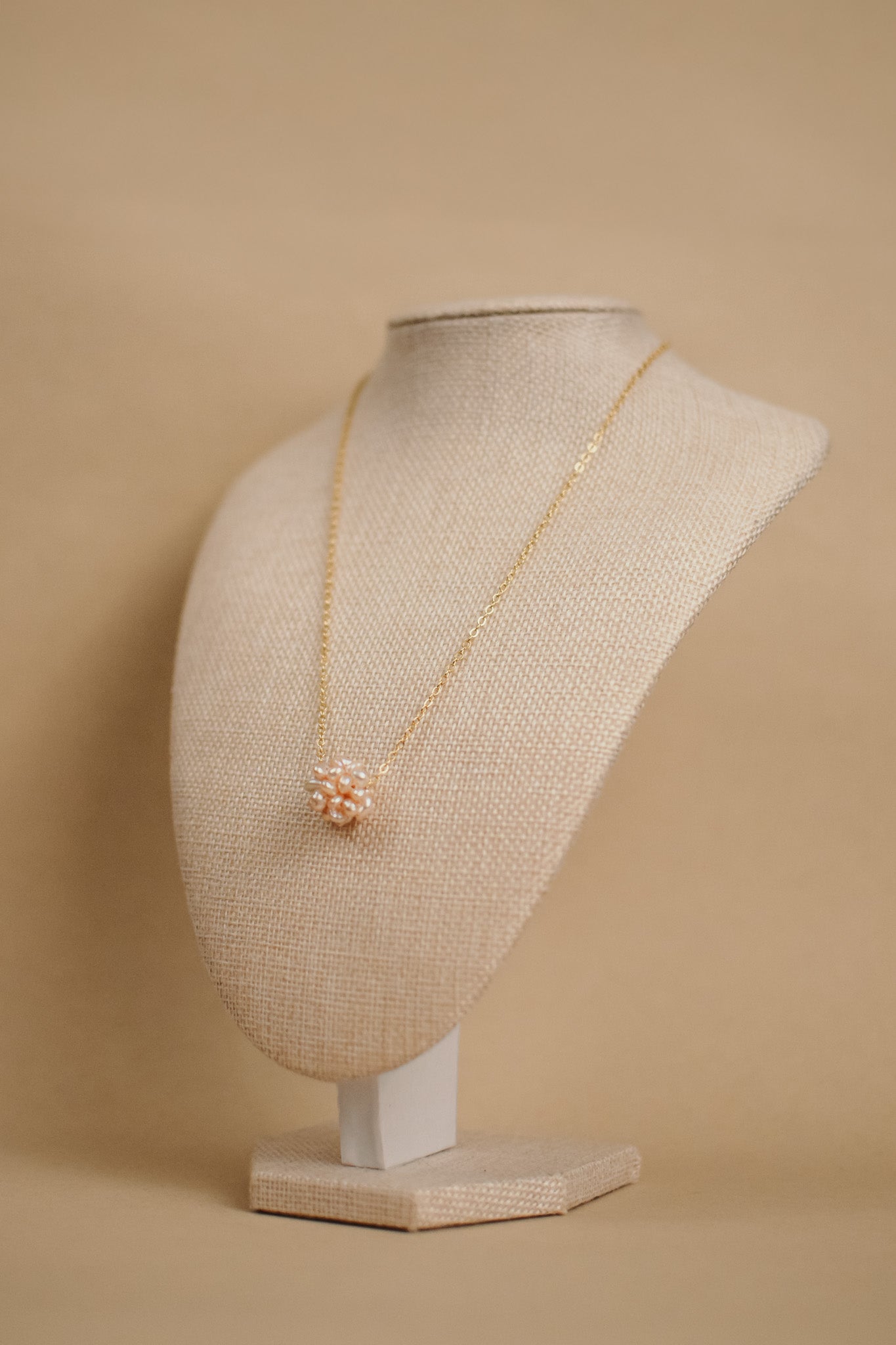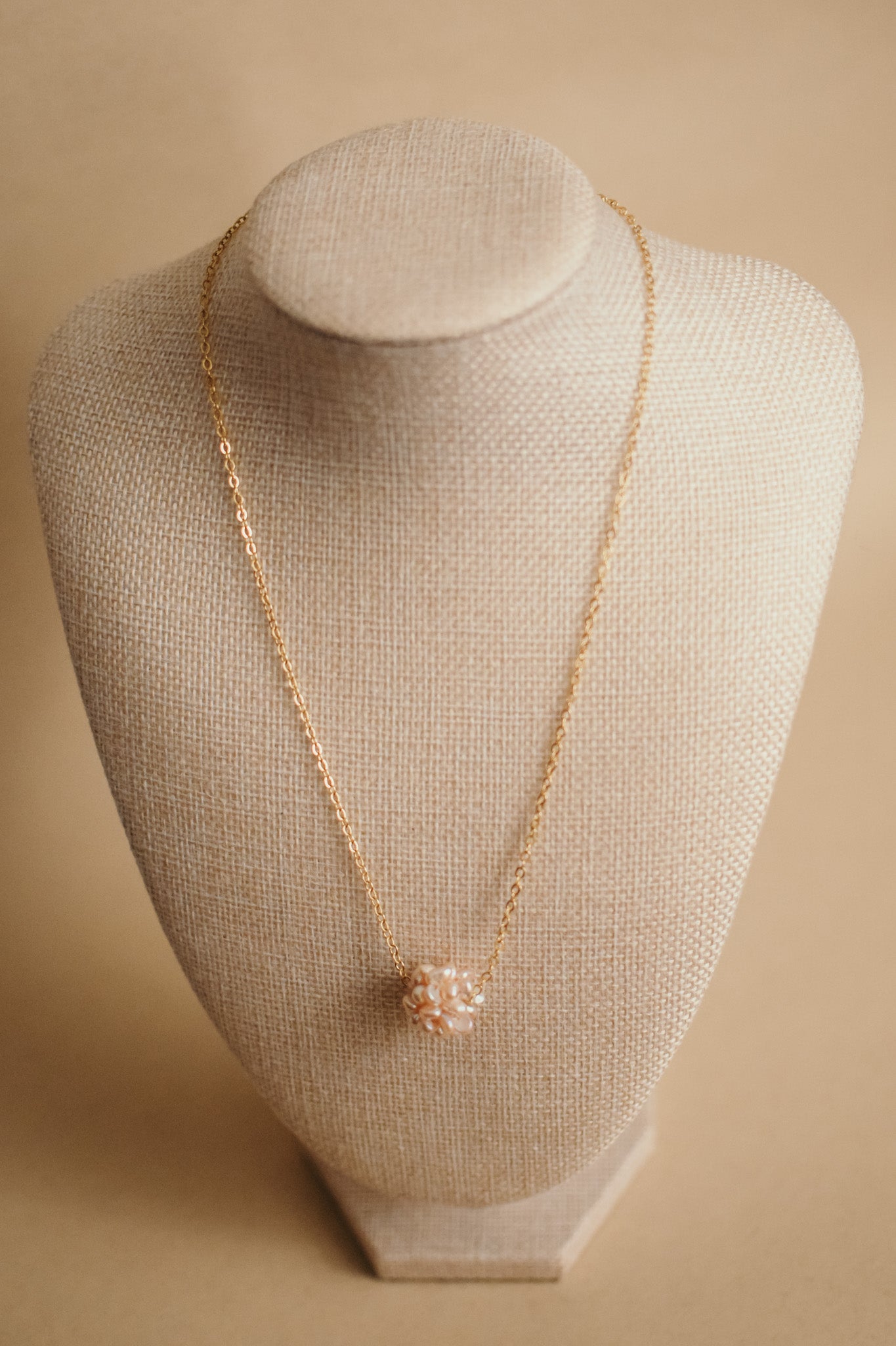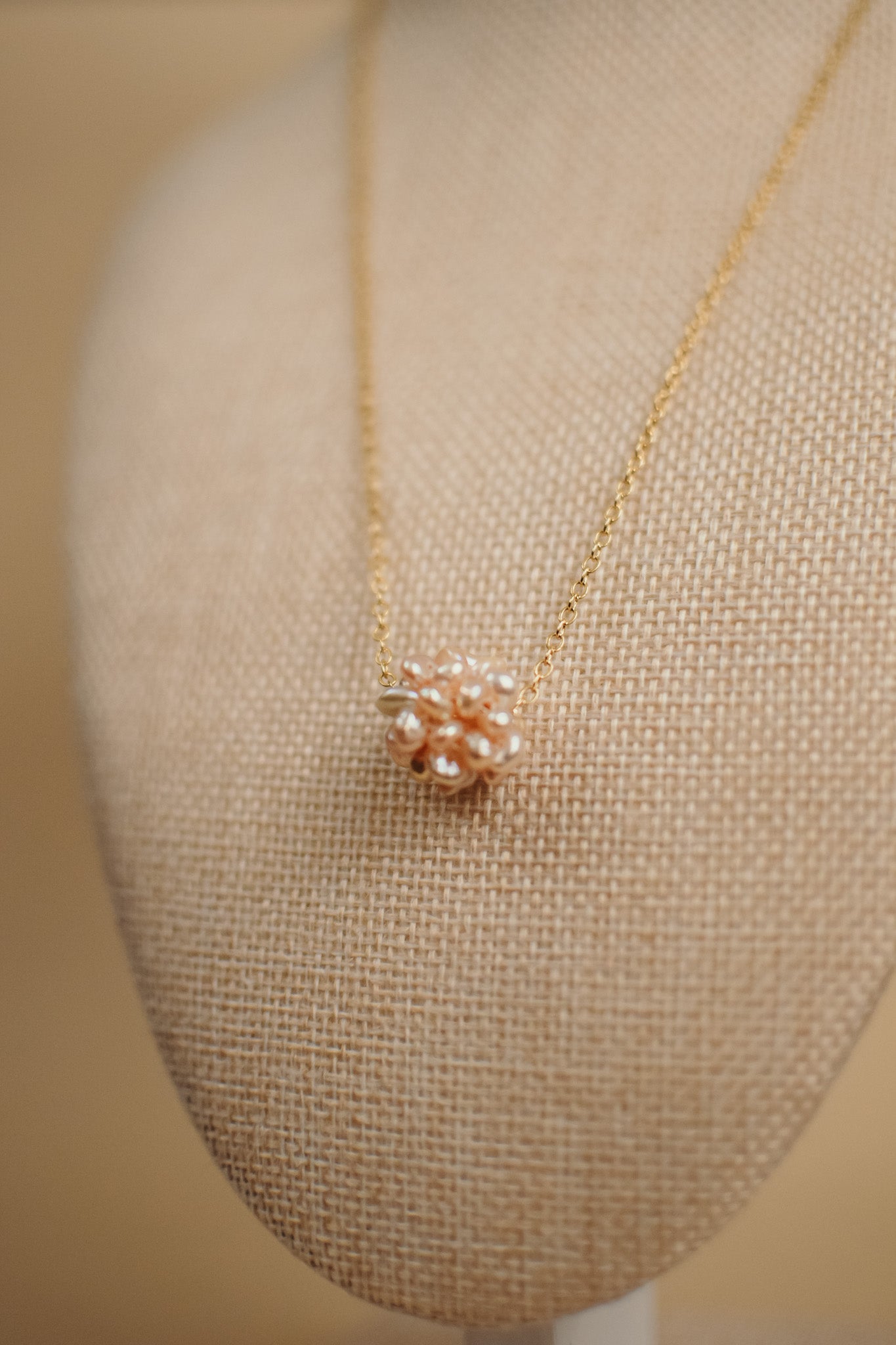Grape Cluster Pearl Pendant Necklace in gold chain. Available in pink, white and purple.