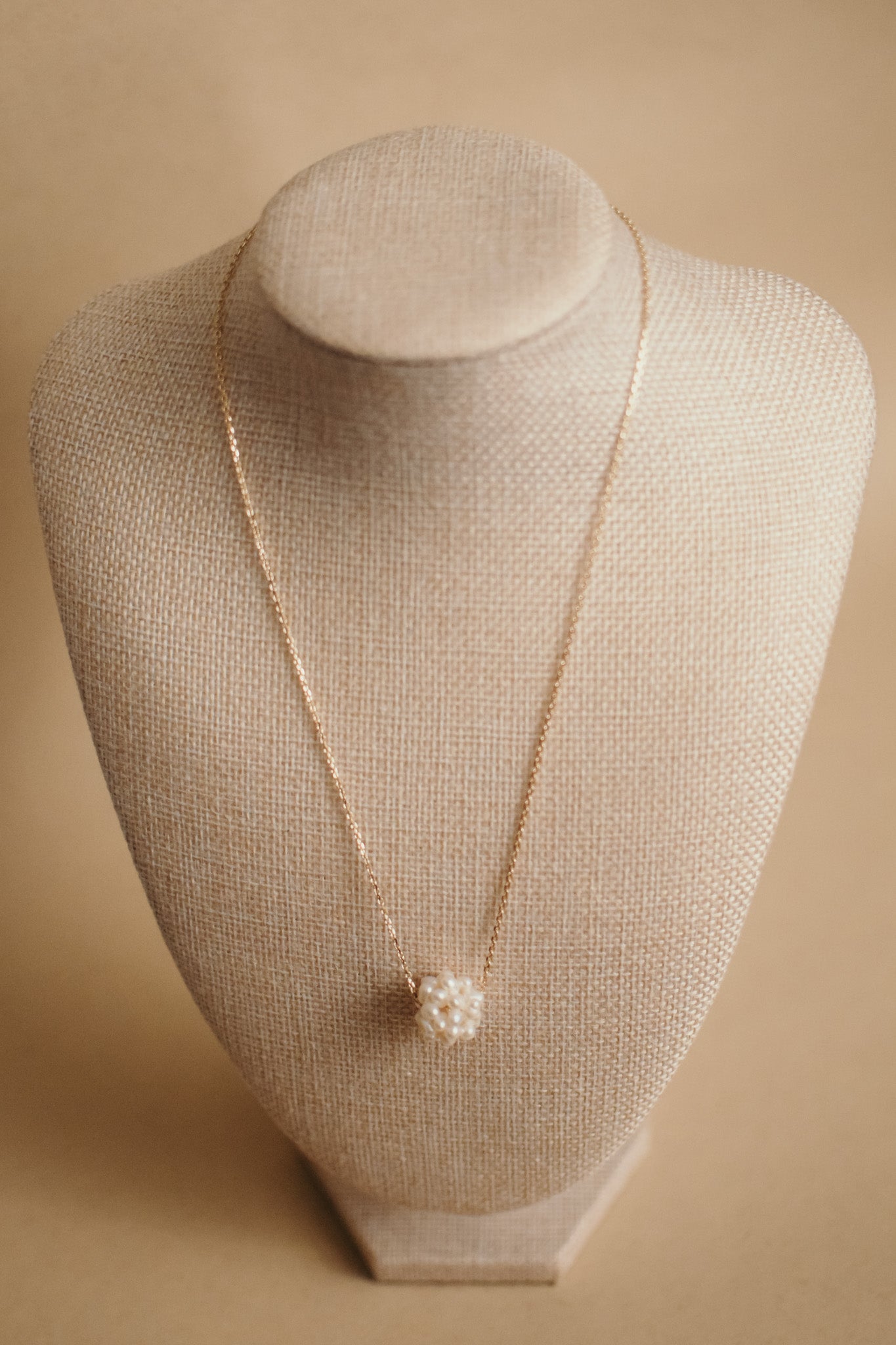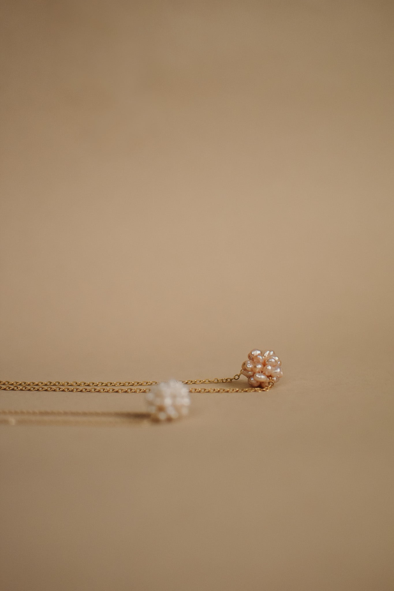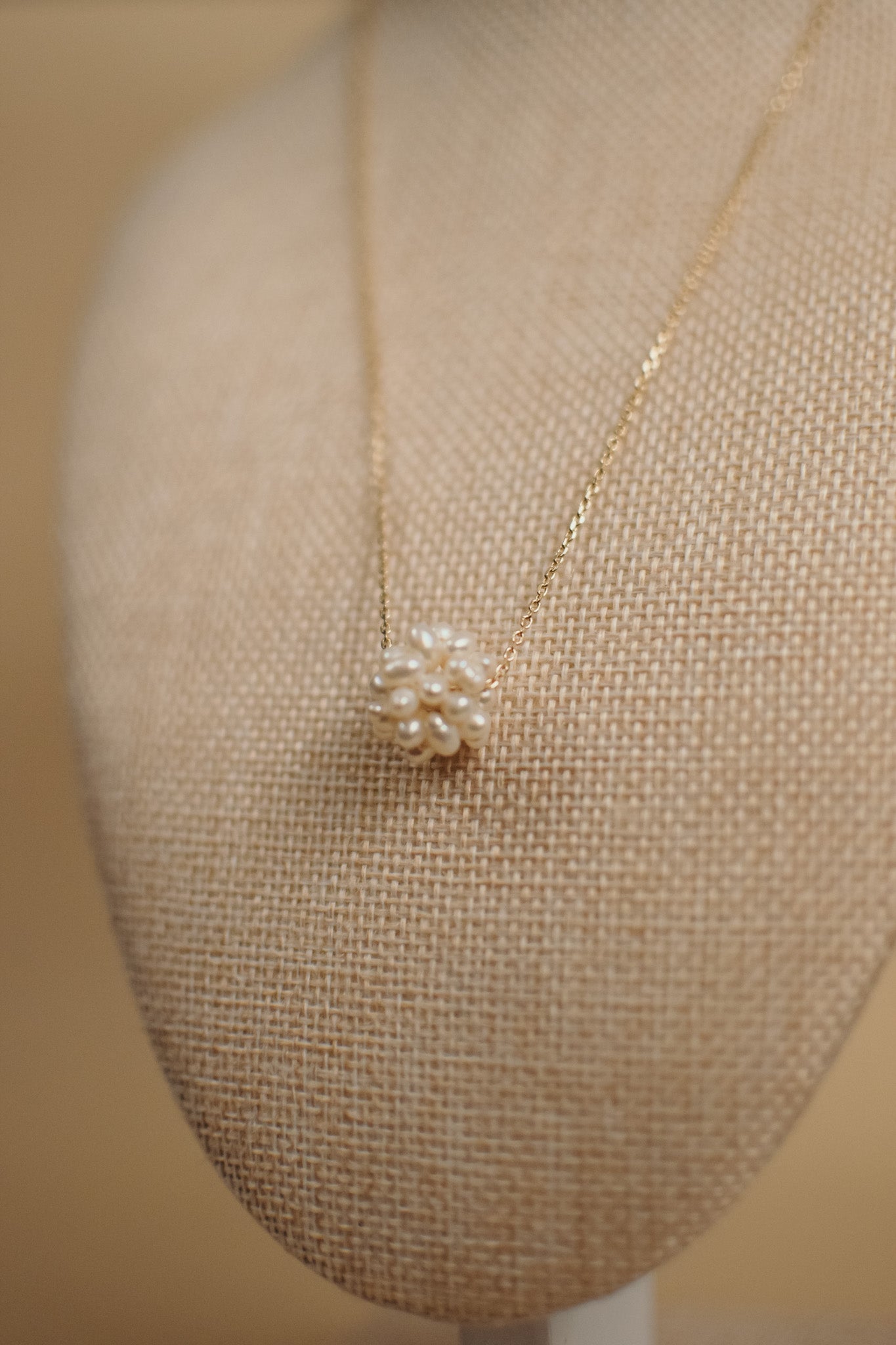 Grape Cluster Pearl Pendant Necklace in gold chain. Available in pink, white and purple.